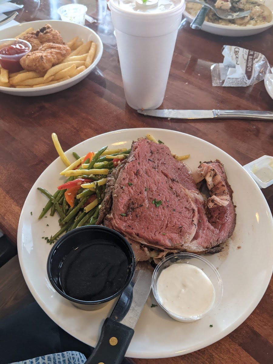 The hush puppies and fish platter were awesome! The fish platter was enough to feed two people. Their kids meals were decent sized too. Service was great and parking was easy! It was great to be able to enjoy their outside patio while being protected from the wind and rain.