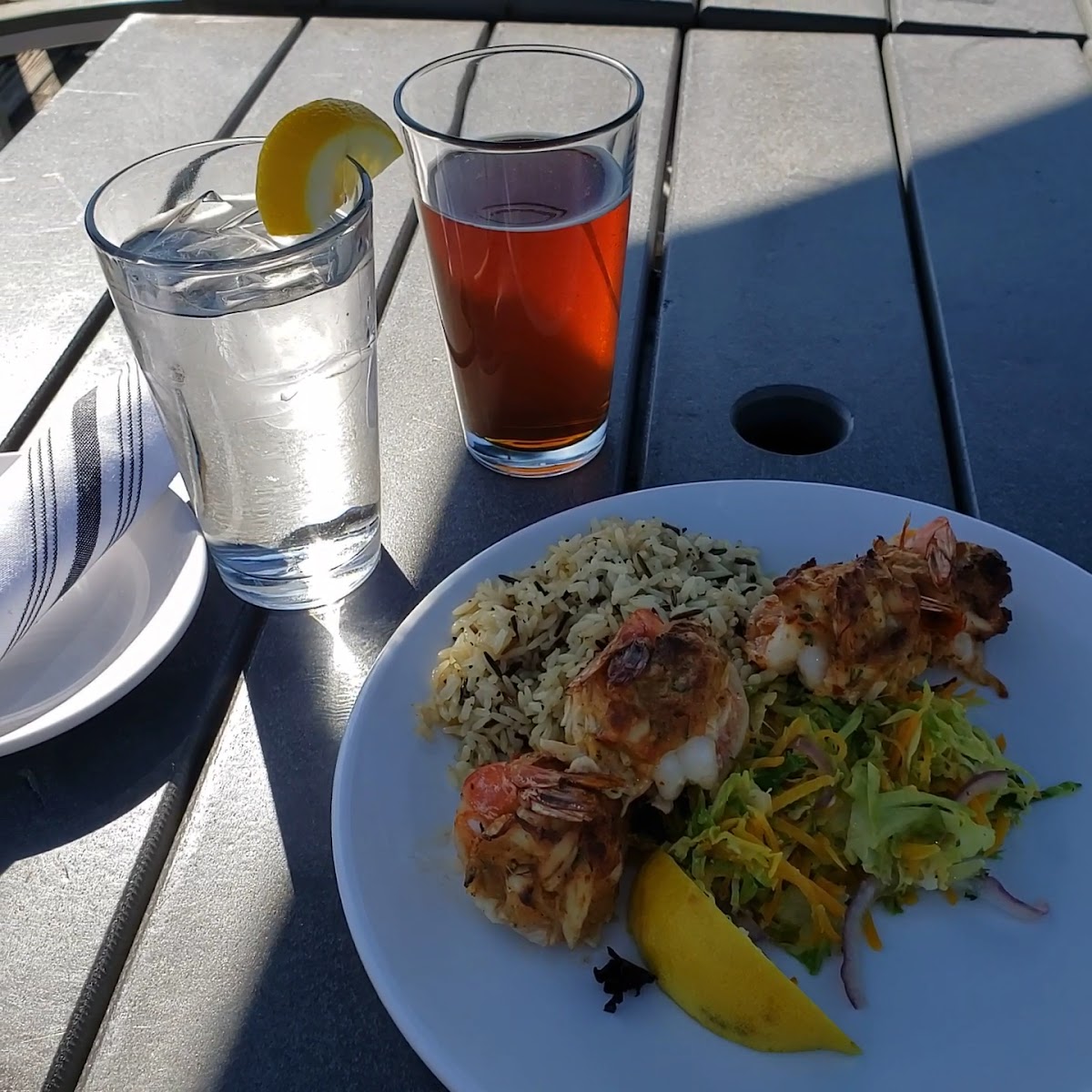 We loved our expirence here. We came during lunch rush and wanted seats outside. We were seated by the service door outside (very busy) and wanted to be moved away from the traffic. They were very understanding and accommodated us. Not only that but the food wonderful. The shrimp and grits was nicely balanced and the oysters were amazing! Shout out to Vinnie for taking care of us and taking time to talk about the history of the area.